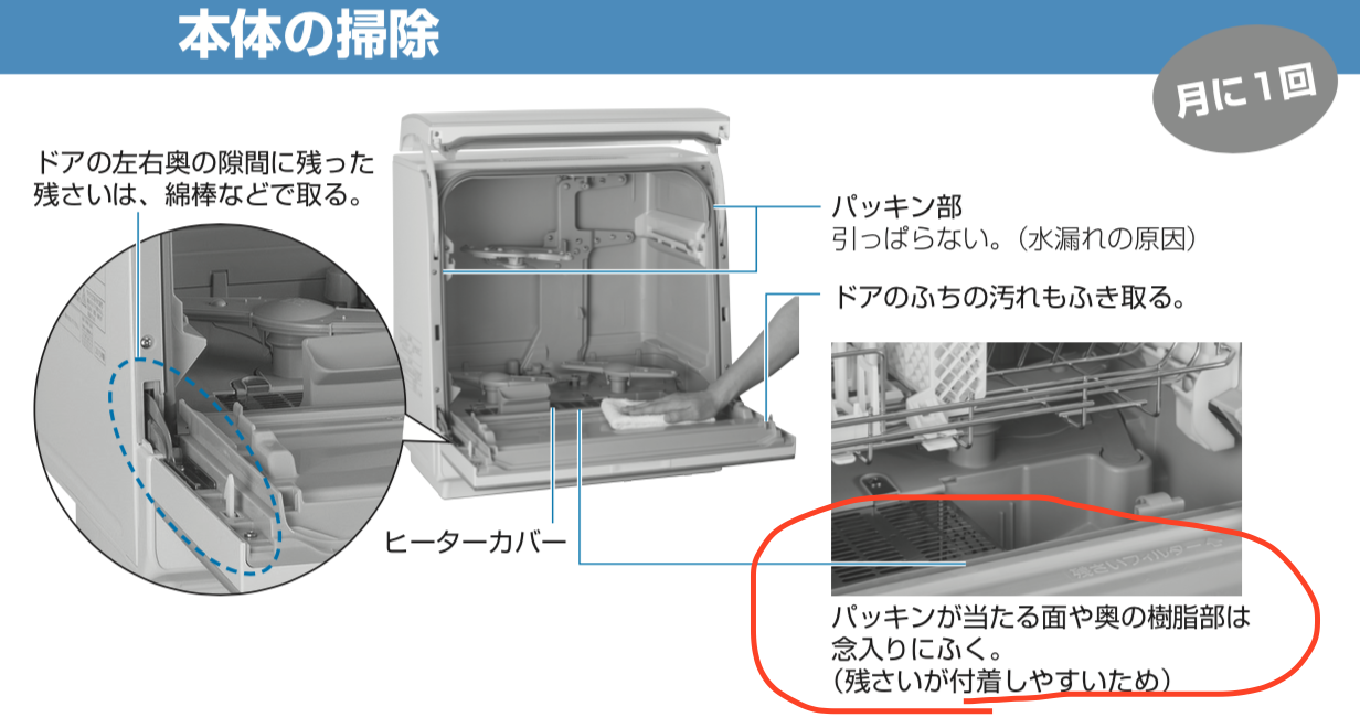 説明書にはさらに、 「月イチで掃除してね」 とも書いてあります。お手入れコースだけじゃ駄目なんですね。